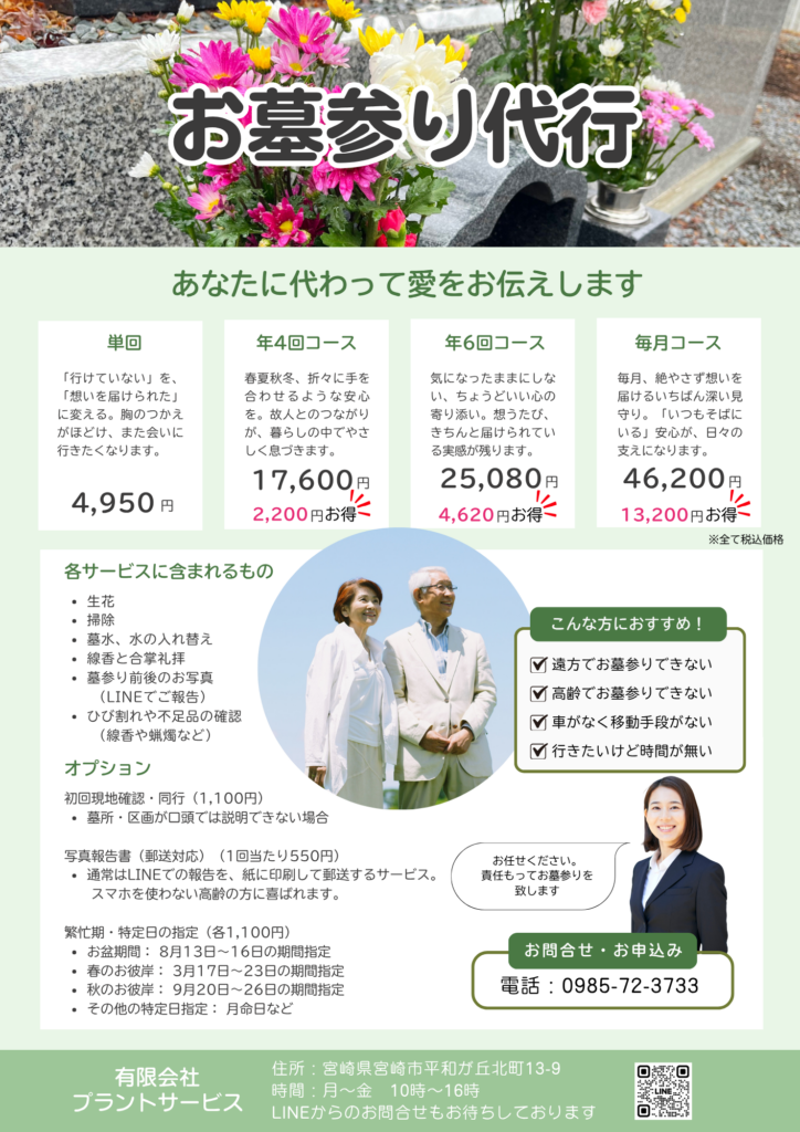 プラントサービスでは、スタッフが毎月必ずお墓参りに行きます。